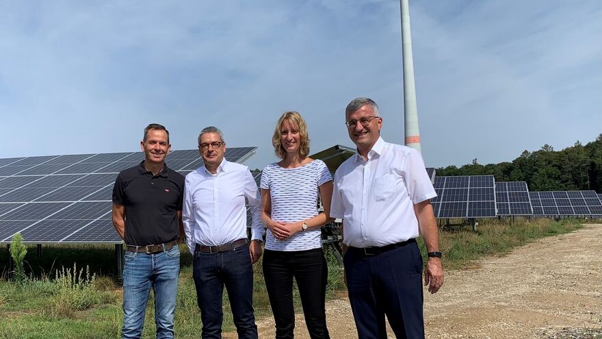 Als Vertreterin des Wahlkreises Neckarsulm besucht Isabell Huber (CDU-Generalsekretärin des Landes Baden-Württemberg) im Rahmen ihrer diesjährigen Sommertour Unternehmen der Region. Am 29. August informierte sie sich über unseren Hybridpark "Seehaus" im Harthäuser Wald. Hier haben wir im Auftrag der BürgerEnergie Widdern GmbH & Co. KG (BEW) eine Freiflächen-Photovoltaikanlage realisiert. Durch ihren direkten Anschluss an den bestehenden Windpark ist so im Herbst des vergangenen Jahres der insgesamt größte interkommunale Hybridpark für erneuerbare Energien in Betrieb gegangen.